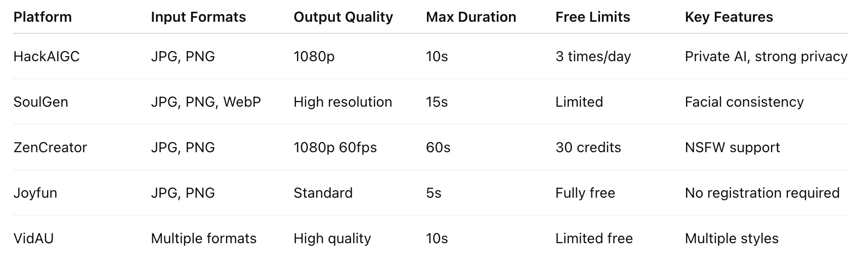 If you're looking for a truly uncensored, NSFW-friendly, and privacy-focused AI image-to-video solution, HackAIGC is currently one of the best choices available.