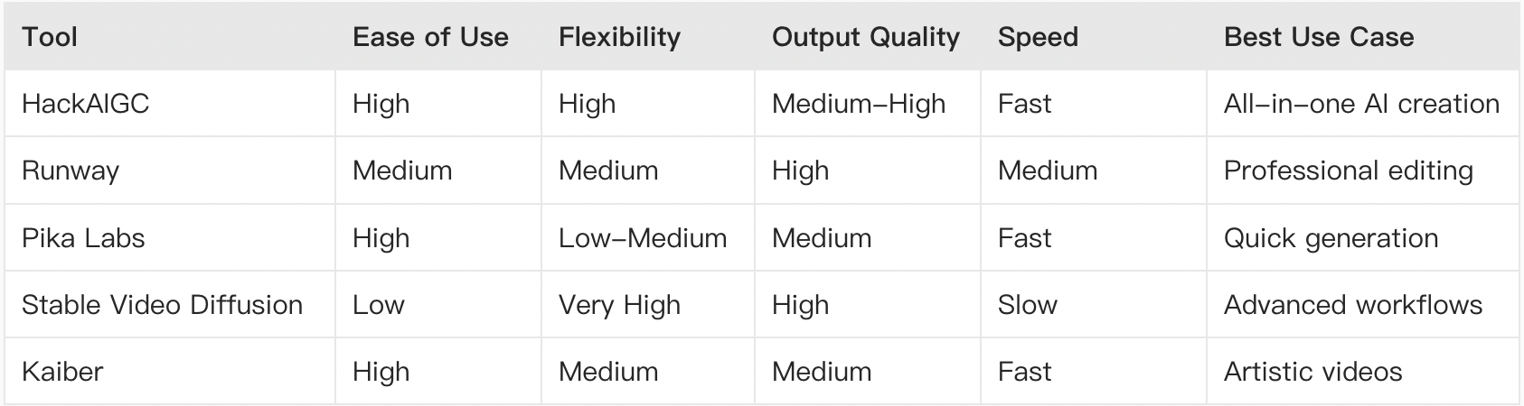 Whether you're experimenting with AI or building a scalable content workflow, tools like HackAIGC, Runway, and Stable Video Diffusion each offer unique advantages.